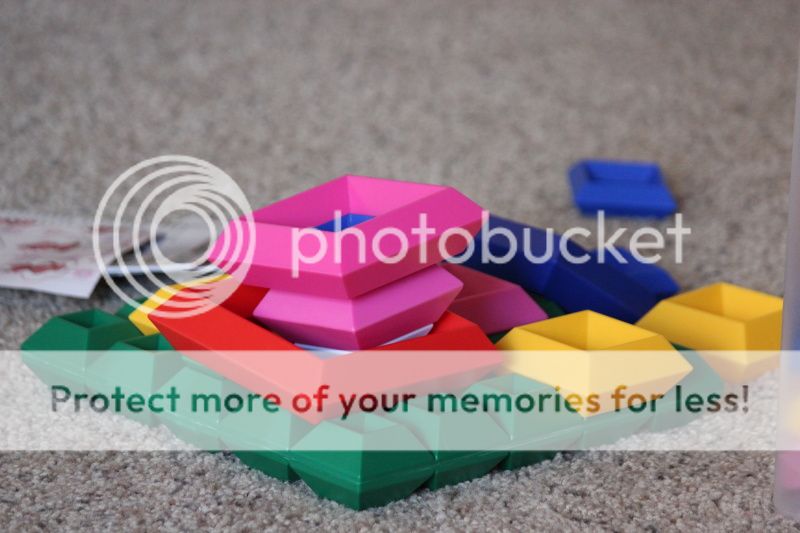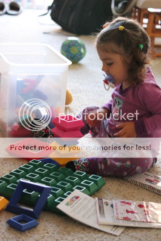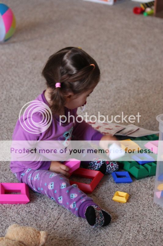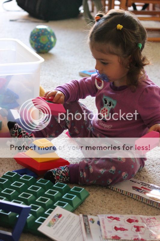 будня утром, еще в пижаме;)очень всегда довольна своими постройками;) приносит в кулачках, показывает;))пропихивает, может и старается, чтобы по цветам, но очень редко получается;)днем забрали Полину и осваиваем с ней новую игру;)