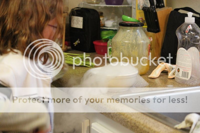 простейшие игры с сухим льдом - просто смотреть как он дымит, потом добавить воды, а потом капнуть туда мыльного средства (для мытья посуды отлично подойдет;))