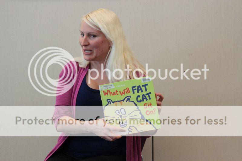 смешная история про толстого кота (по-моему фишка этой простой книги в том, что там перечисляются разные животные, и мы привычно на каждую картинку бекали-мекали, а для местных детей это было большим развлечением)