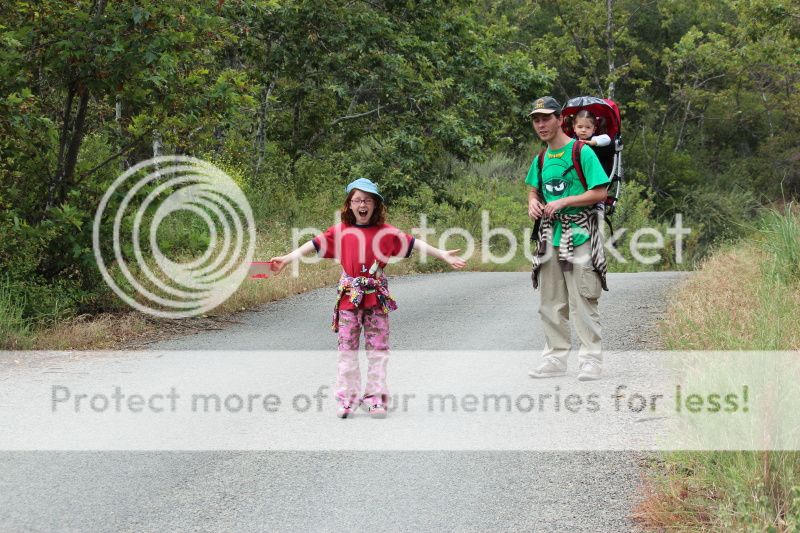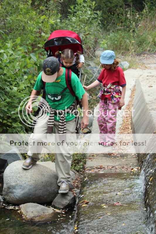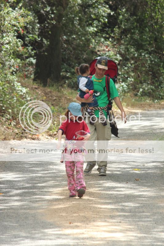 Но, так и не доехали, т.к. на самых подступах к водопадной стоянке случилась авария (все живы, грузовик перевернулся какой-то и просыпался горошек груз)... короче, всех, кто туда подъезжал, разворачивали. Дороги горные, Полина ныла, Ева проснулась... обратно ехать домой совсем не хотелось... развернуться-то развернулись, но далеко не отъехали;) остановились в соседнем лесу на погулять...