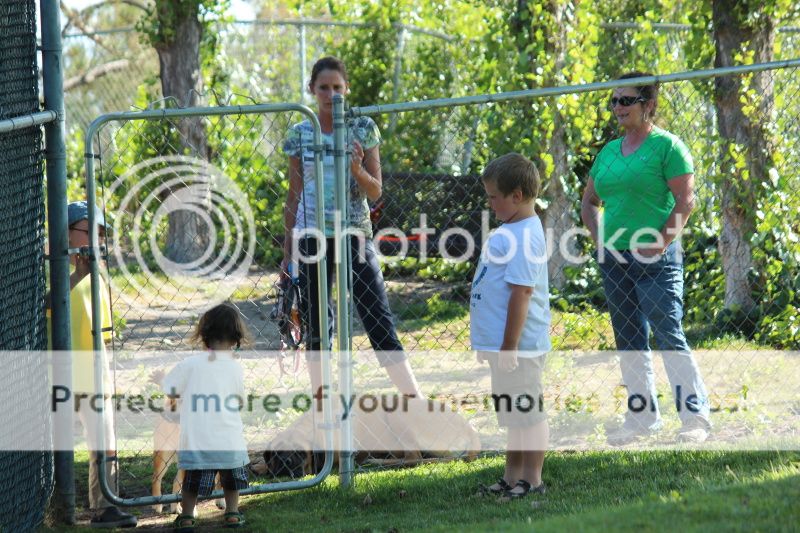 Полина как всегда, не может пропустить выгул дружественных собак на собачей площадке;)