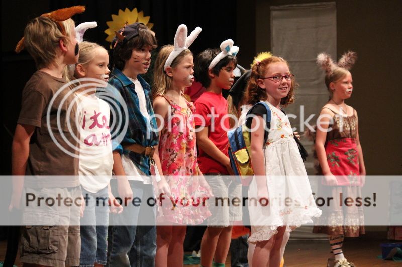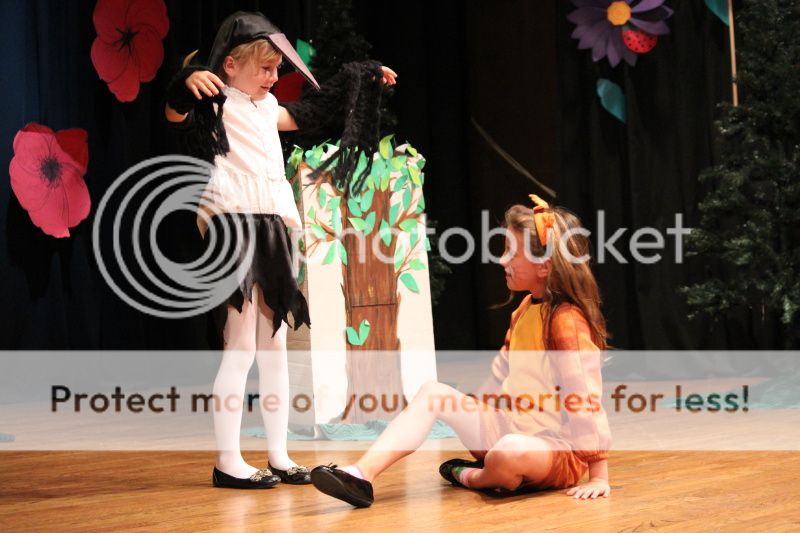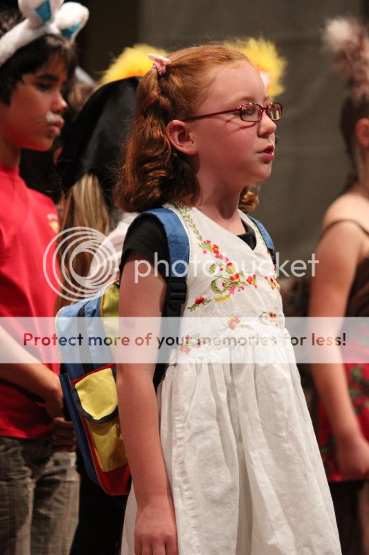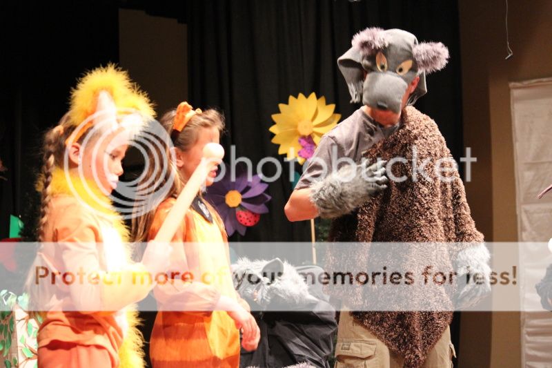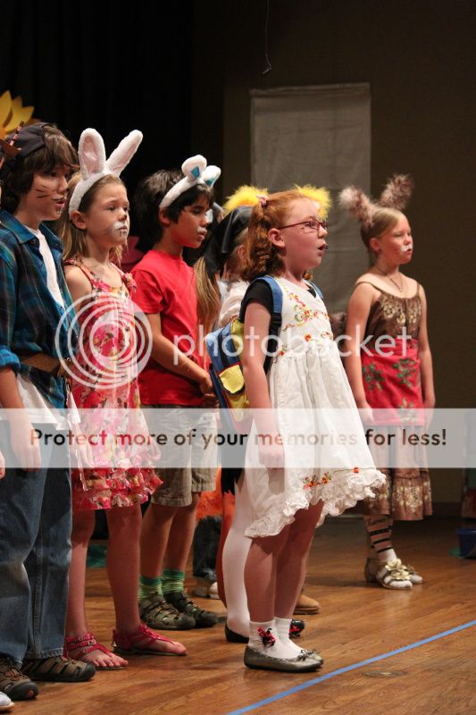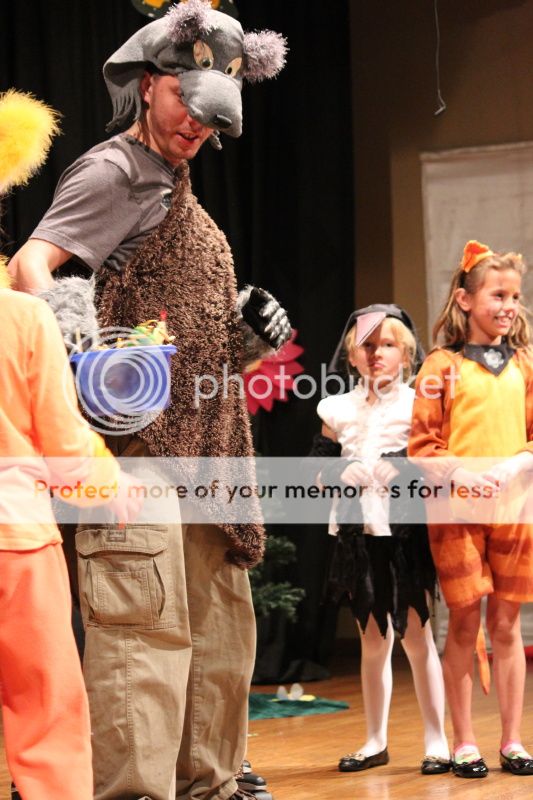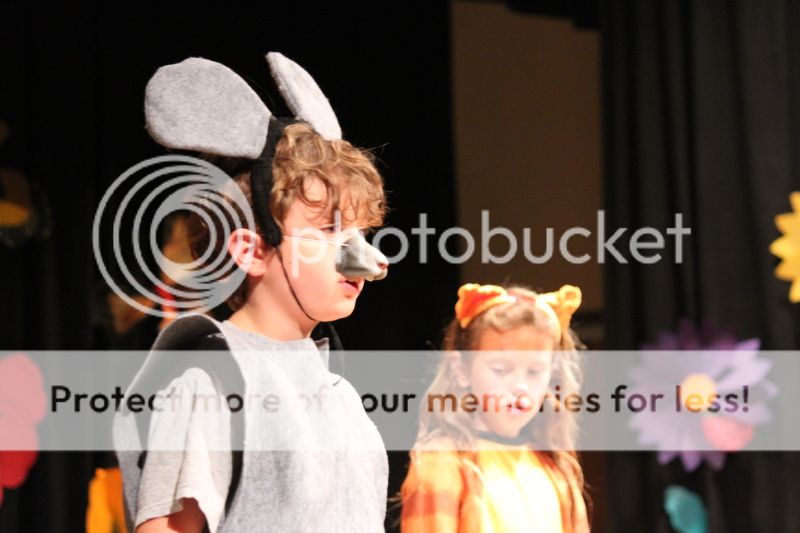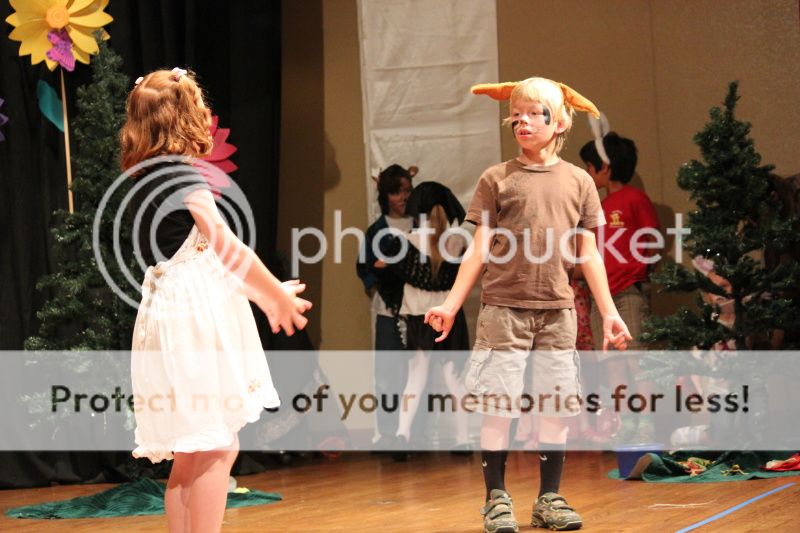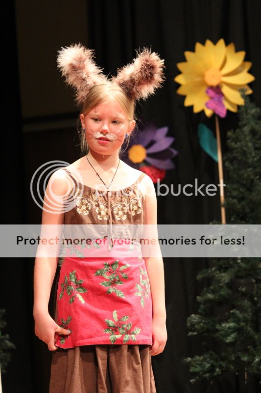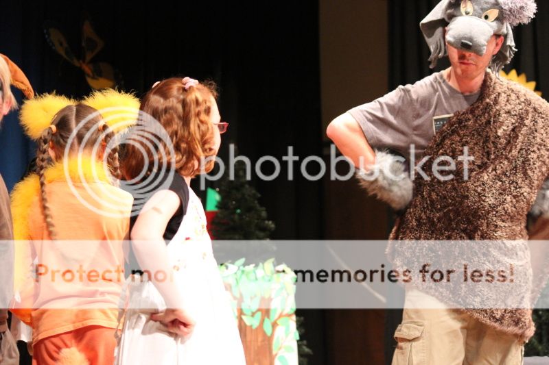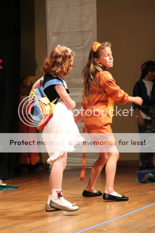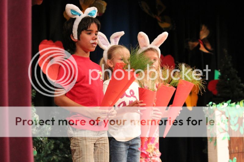 костюмы половина домашние, половина выданные учительницей театра. да, я тут расстраивалась и ругалась, что никакой дисциплины на уроке, но как только репетиции перенеслись в зал - все встало на свои места;) урра, получилось очень даже неплохо;) Стас забыл слова один раз, но отлично выкрутился так, что весь зал смеялся;) Полина свою роль отыграла весьма ровненько пела песню громче всех;) музыкальная руководительница не успевала, и догоняла Полину;))))) было очень даже интересно там быть;)