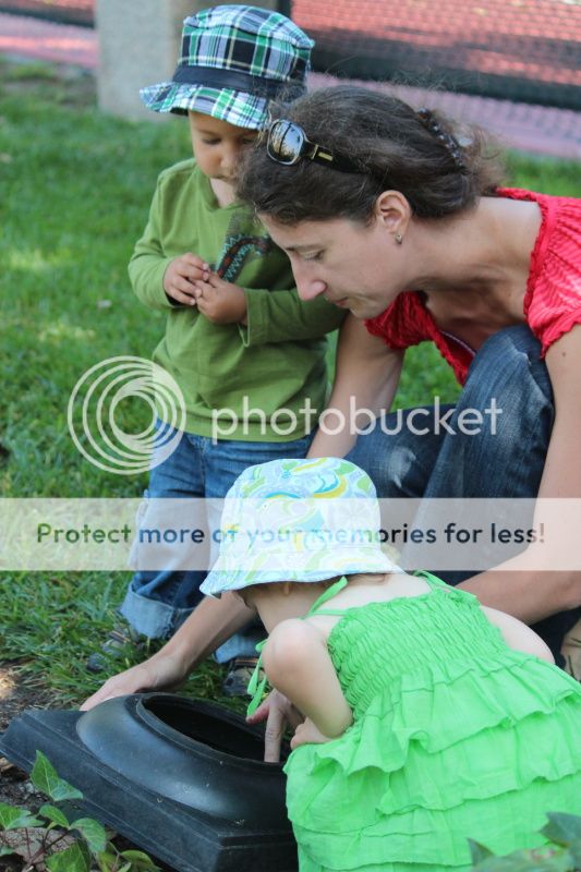 носил Матвей в руках прекрасный мусор - рекламную открытку с мотоциклом... носил, носил, потом мама его носила, носила, а потом, они решили открытку отправить в щель у этого служебного помещения (там трубы какие-то, провода)... Ева помогла и пропихнула открытку поглубже;)