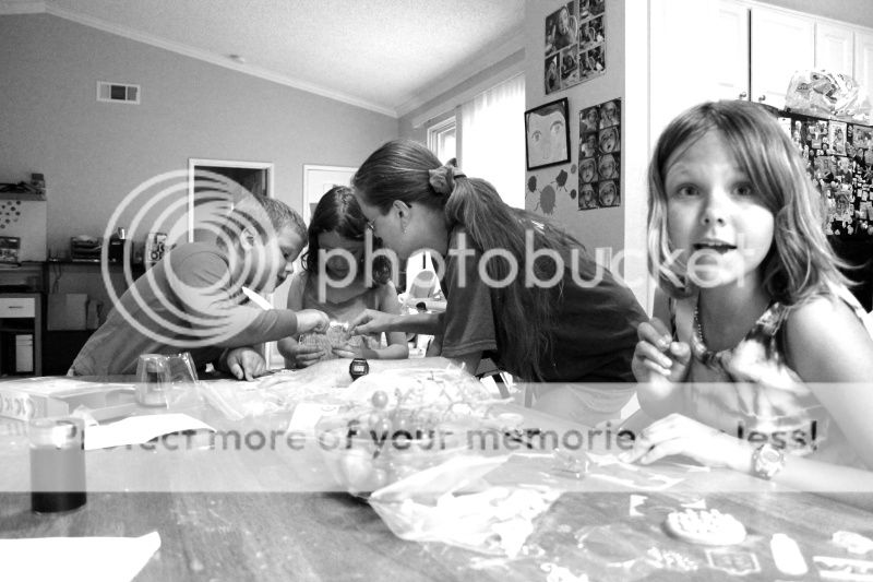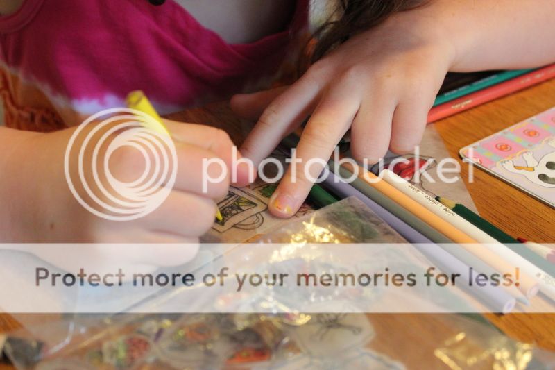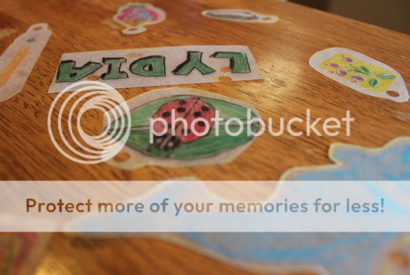 а мы так впечатлились этими Shrinky Dinks, что все субботнее утро сидели и все вместе рисовали и вырезали и запекали в печке готовые фигурки;)