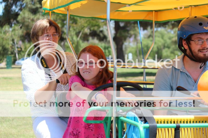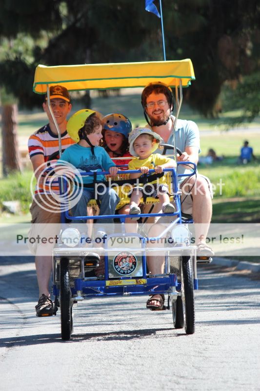 далее мы разделились. Часть девчонок пошла искать паравозик, а остальные взяли снова велоквадропед и поехали, а те, кто не ехал, катил коляску в сторону природного заповедничка;)