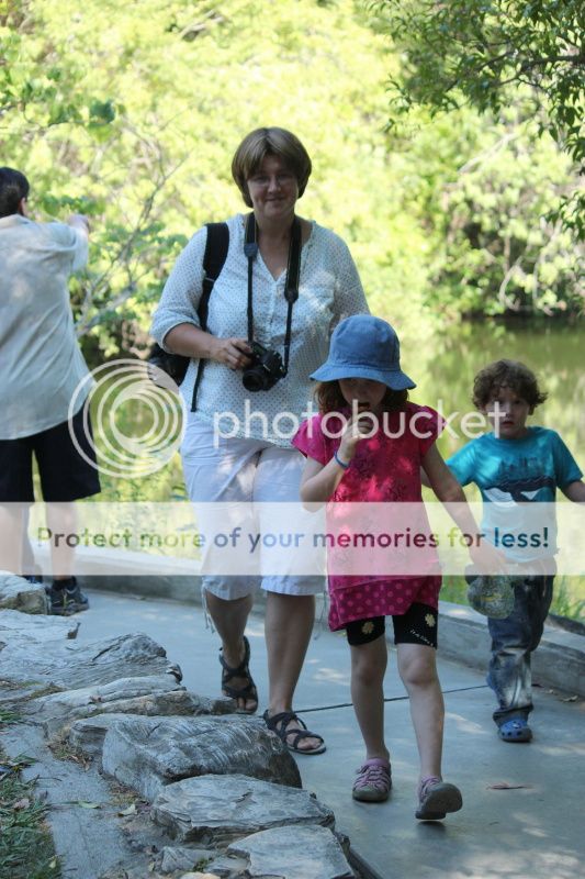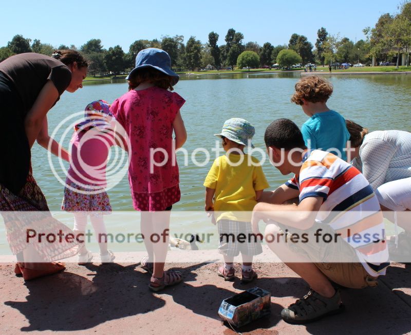 утопили кораблик... не с первого раза нашлась помошь. Полина пришла жаловаться, что они достать не могут кораблик. Я говорю ей: сами потопили, сами ищите способы как достать, вон мальчик с удочкой - идите и спросите его подцепить кораблик. Мальчик очень странно относся к просьбе о помощи, пошел к папе... похоже, что папа его был недоволен... короче, стали своими силами думать как достать;) из соседней компании дядька с собачкой наблюдал все это, дотянулся до большой палки, сорвал ее сухую с дерева и проблема решилась;)