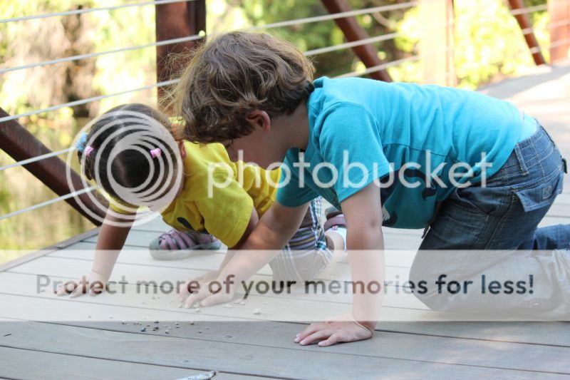 Ева нашла себе любимое занятие - кидать камушки в щели;)