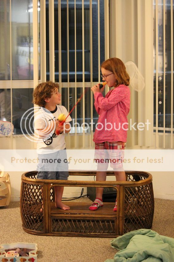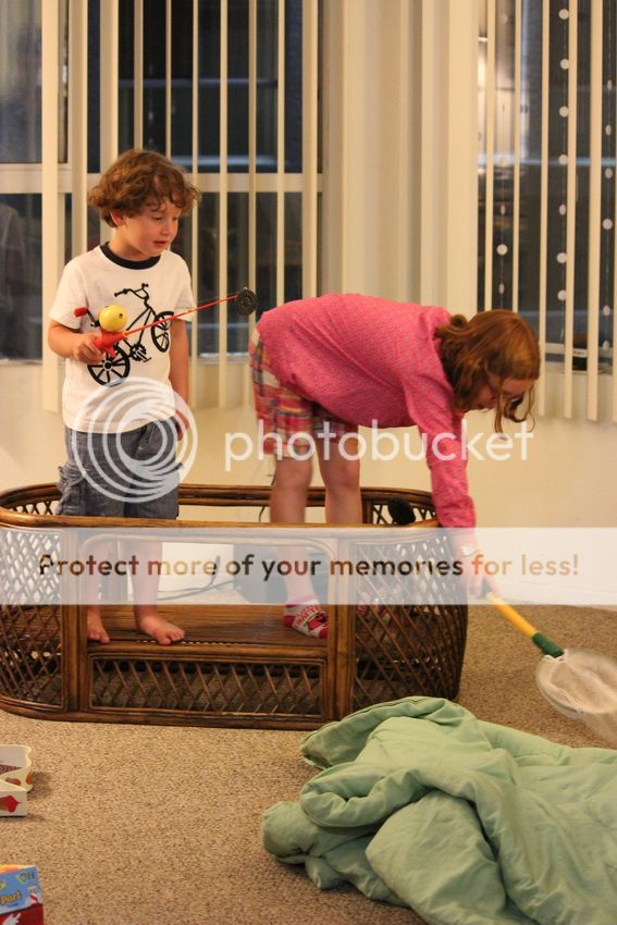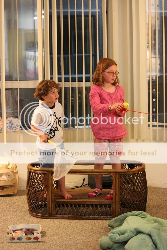 хорошо иметь богатое воображение;) ловили рыбу рыбакии сачком и удочкойподи большая там плывет акула!будем брать!давай, помогу!надо хорошенько прицелиться...размахнуться и закинуть удочкуи все равно, пришлось, чтобы один рыбак вышел и руками рыбу ловил;)))))