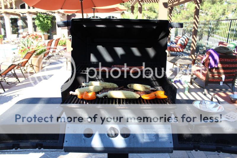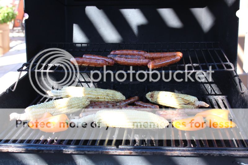 однажды в воскресенье мы решили никуда не ехать гулять, а отвиснуть в нашем бассейне.видимо, мы были не единственные, которые так тоже подумали;)мы даже впервые решили использовать жаровню;)такого плана:довольное водоплавающее;)разнокалиберные сосики - взяли на пробу, как вообще это дело делается;) жечь сосиски на огне... вроде есть можно;)я бооольше не хочууу, можно я пойду купаться???Евуха обычно сосиски не ест, ей были ягоды (она дома обедала, нечего;))за кукурузу я могу душу продать;)а за сладкие перчики - Стас;) нажарили много, потом еще пришлось на ужин доедать;)но для разнообразия такой вид проведения выходного тоже неплох;)