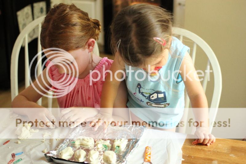 рыб сделали, раскрасили акриловыми красками, глаза прилепили, магнит на палку привесили... Ева поиграла чуток, поняла, что соленые рыбы и с одной полностью краску усосала... пришлось все попрятать...