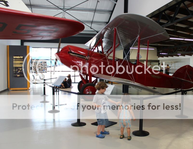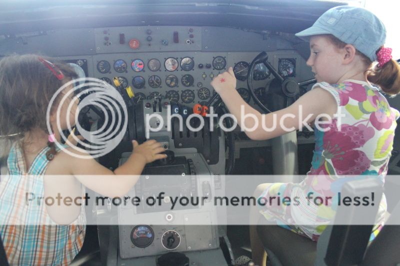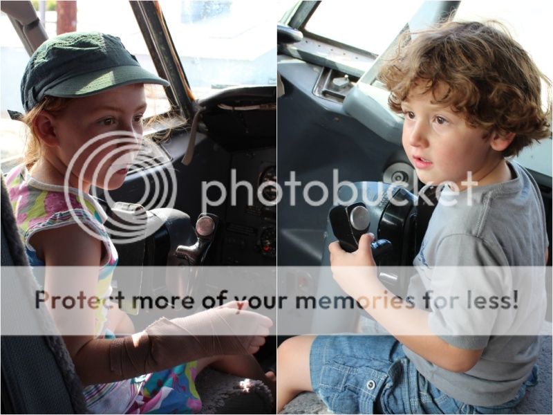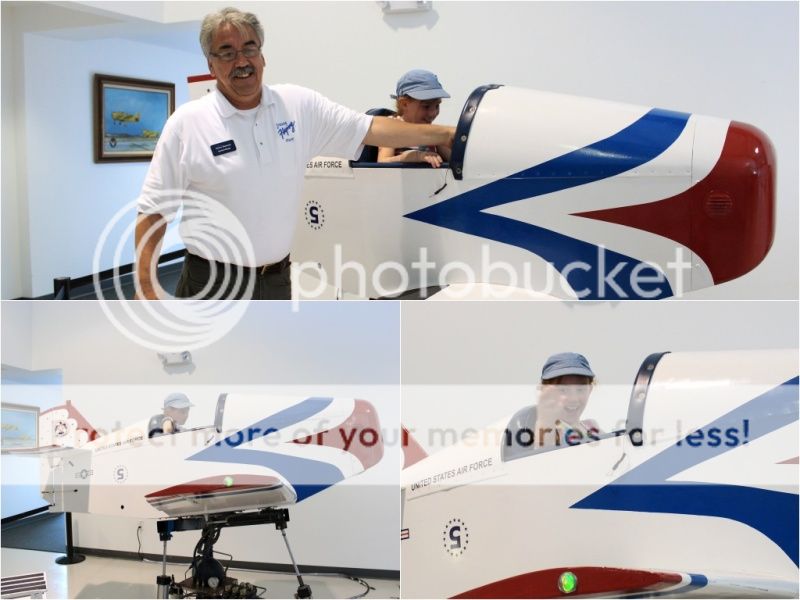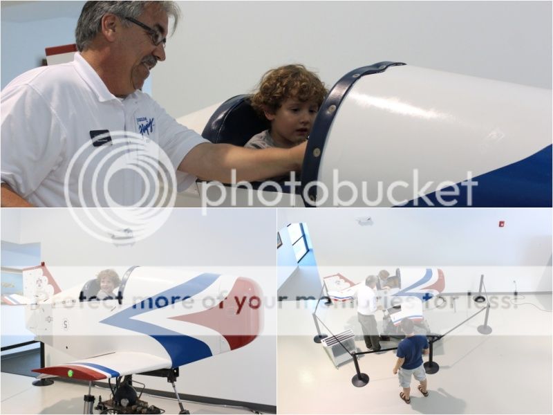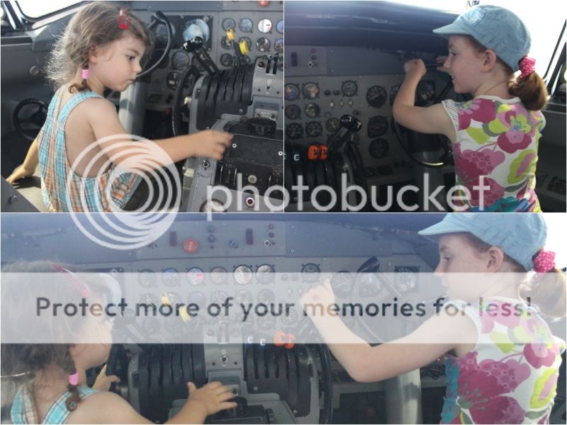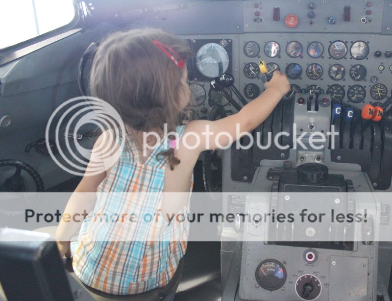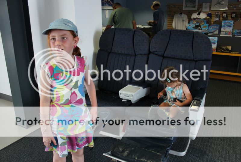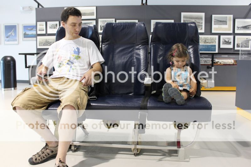 при входе в музей там стоят кресла из настоящих самолетов - вон Ева пытается пристегнуть ремни;)