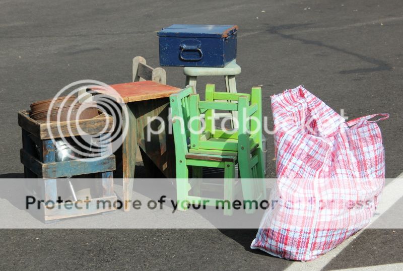 Санта Моника - барахолка очень короткий взгляд на блошиный рынок около самолетного музея...столовое сереброкакие-то русские красавицы, Елены прекрасные;)ну все, стулья в сумку и барахолка закрыта;)а с нее вид на музей:и ушли мы на площадку детскую, чтобы детки побегали;)