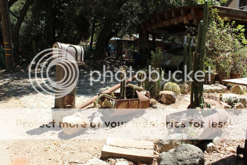 кактусы в ржавых так называемых клумбах;) позади тень от дубов... там много больших деревьев, поэтому мы любим туда гулять;)