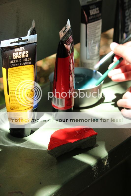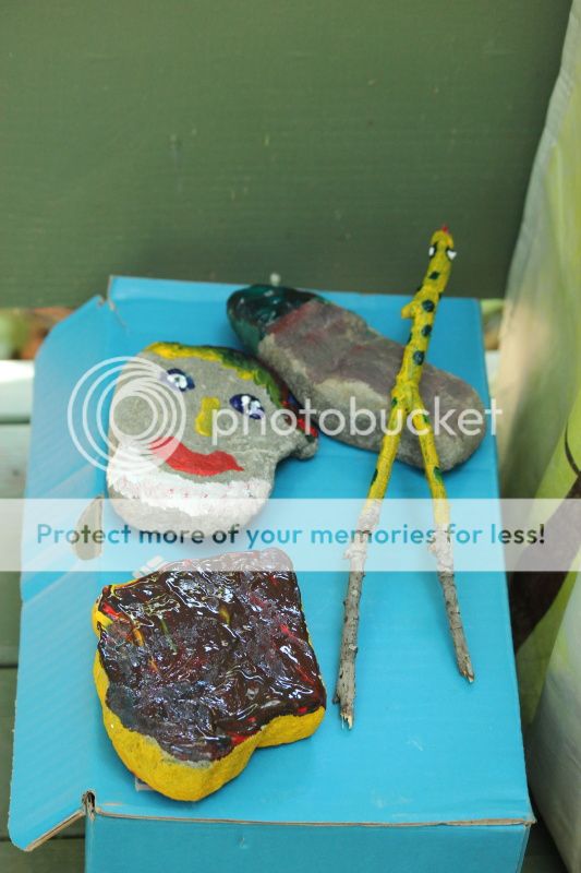 девчонки уселись обсудить как красить камни у нас проект был камнекрасительный.