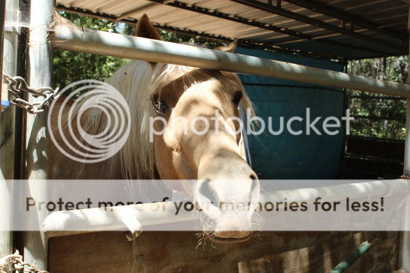 а это обязательная программа - белая лошадь, которая стоит и скучает... мы ее всегда травинушкой свежей кормим;) и, конечно же, гладим и разговариваем с ней по-русски;)