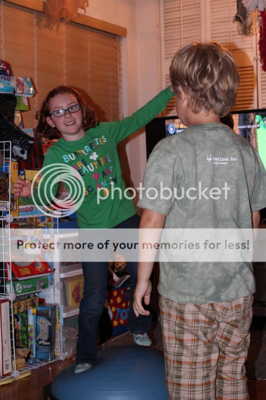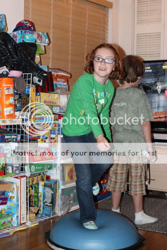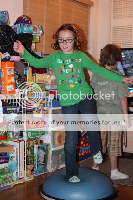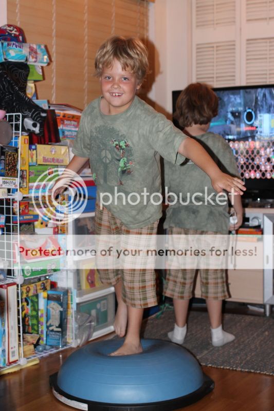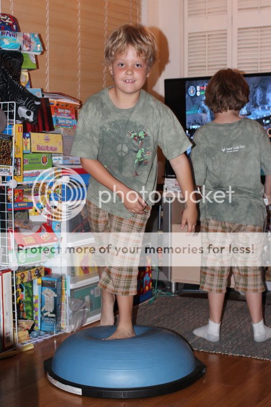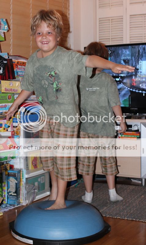 я не могла не выпендрица;) устроила им соревнование - кто дольше устоит на специальной штуке для тренировки равновесия:)