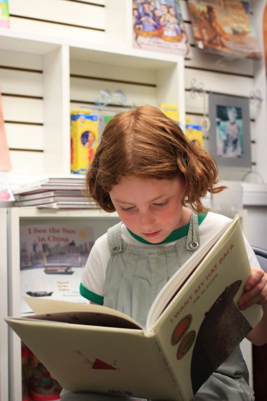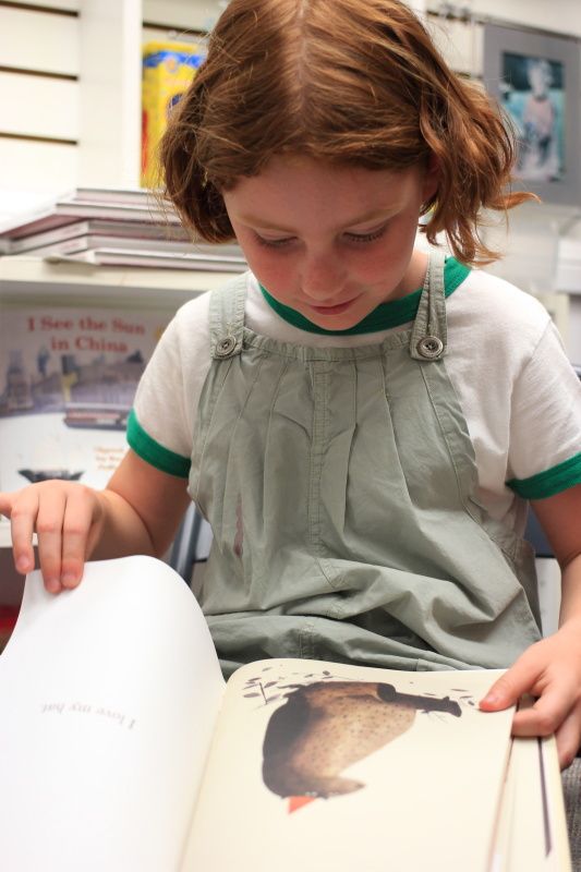 Полина читает книжку "I want my hat back", очень ржачная книга;)