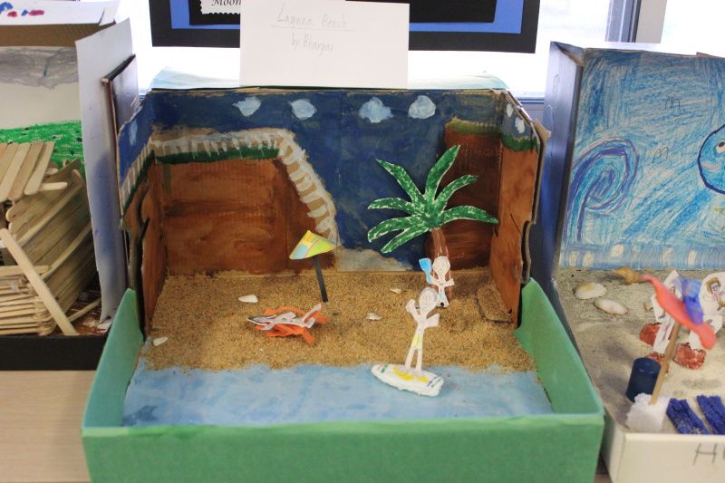 показывают все достижения учеников, их поделки и альбомы с работами в течении года, которые собирались.