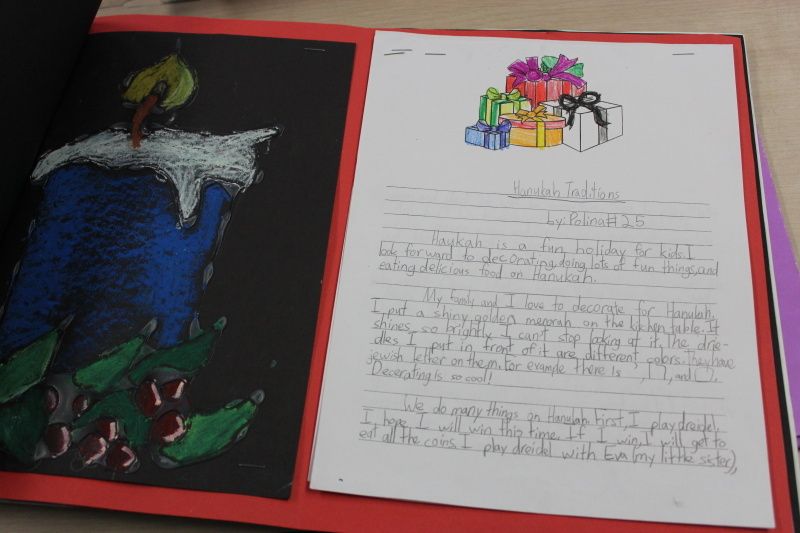 *на выбор детям в зимний период предлагают написать об их любимом празднике. они, конечно, пишут отдельно про Крисмас, про Новый Год, а Полина как гражданин (паспорта!!!!! сделать!!!!!!) Израиля всегда пишет про Хануку;))))
