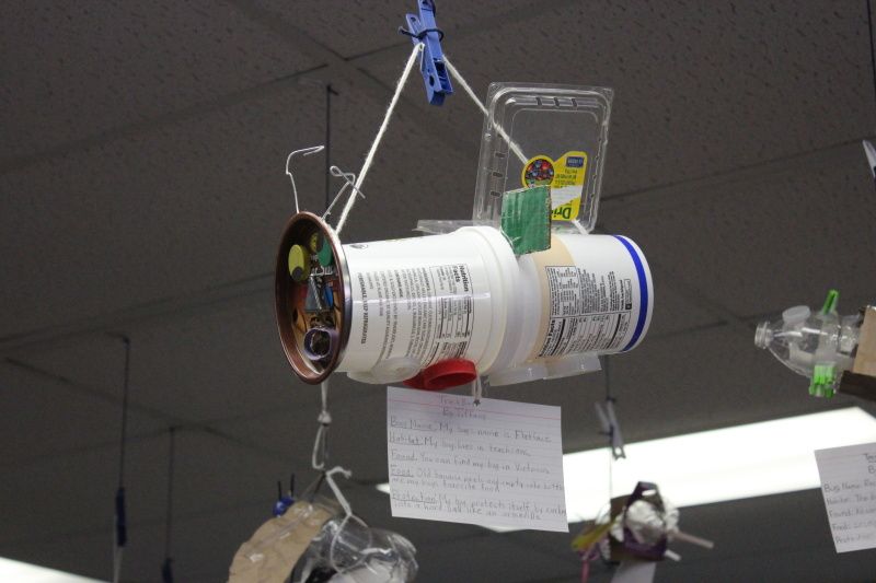 весной был проект - создать насекомое из всякого упаковочного материала.