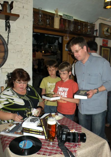 у дверей Крокодил Гена молодой человек с пивом [info]akuaku@lj, за столом дама с книгой - [info]tata_akivis@lj