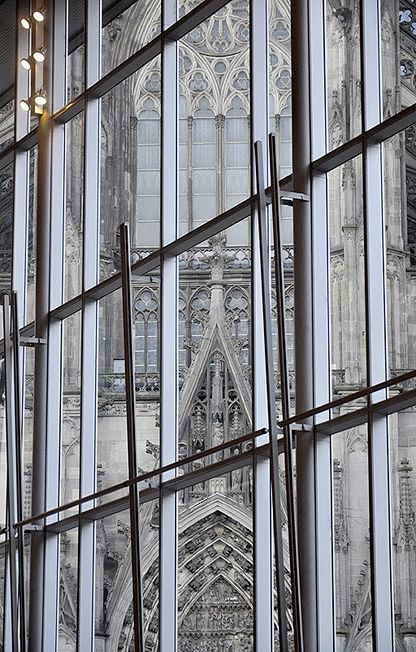 И ухитрилась выбраться к часовне Брата Клауса в единственный день, когда она закрыта для посетителей. Час на электричке от Кёльна, полтора часа пешком по (местами почти российской грунтовой) дороге, а в результате ничего не увидела, даже сфотографироваться на фоне не получилось. Снимок скрадыает масштаб, в реальности здание крупнее: ![]() Кельнский собор едва просматривается сквозь помутневшую крышу вокзала, иллюстрация к стимпанковской новелле: ![]() ![]() ![]() Мне повезло, облака расступились очень вовремя: ![]() ![]() Уезжала из Кёльна в первый день карнавала, на перроне расцеловал пожилой немецкий мужчина со смешыми усами, очень трогательно! На фотографиях Аахенского собора в старых книгах не разглядеть золотую мозаику, поэтому с детства была уверена, что его интерьер суровый, почти романский. А там византийская роскошь: ![]() ![]() Собор Марии в Фелберт-Невиге, напротив, в жизни не производит того сильного впечатления, которое обещают фотографии. Почему-то образ современной архитектуры францисканского ордена строится на прямой ассоциации с монастырем в Ассизи, таков не только собор в Фелберте, но и монастырь в Катовице. Но я не решусь осудить архитекторов за любовь к аллегориям. ![]() ![]() Здание кричит: я из шестидесятых! ![]() ![]() ![]() ![]() Я вижу лицо. ![]() И вот: ![]() |
