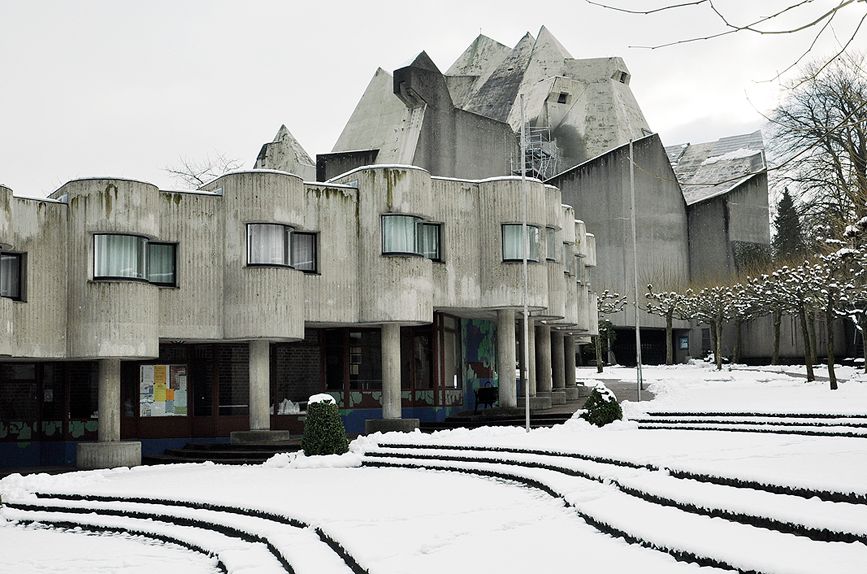 Одно из наиболее впечатляющих зданий, которые мне повезло видеть "живьём" (когда-то показывала фото). Готтфрид Бём запроектировал дорогу к собору таким образом, что в качестве статичного объекта его воспринять просто невозможно.