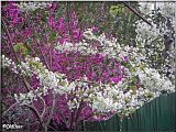 А рядом с ним цветет черешня. Если ловко подобраццо вдоль забора, то можно их сфотать вместе: