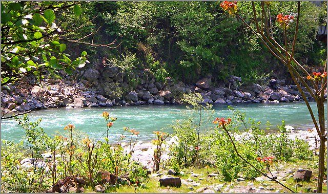 речка тожи хороши, тока задавлены зеленью, нада бирюзовость доминирующим цветом делать, другими словами - больше речки, меньше кустов, а то теряется:)))