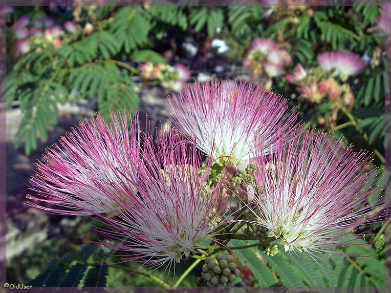 Так называемая "ленкоранская акация" - по имени местности, откуда предположительно родом. С акацией родственна листвой, цветок деградирован, мы видим тычинки.
