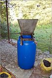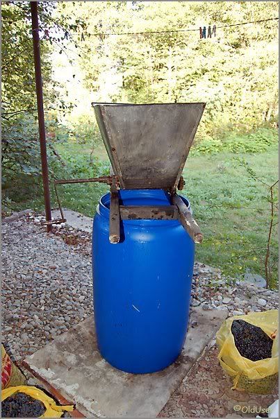 Также нам нужна будет бочка на 230 литров (конечно, лучше иметь деревянный бродильный чан, но за неимением...) и машинка для передавливания винограда: