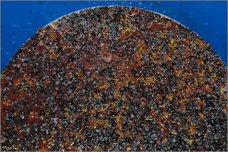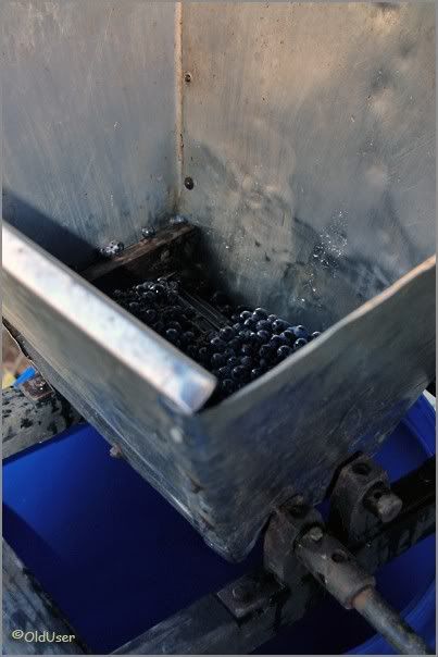 Как только у нас это все появилось сразу же начинаем давить виноград в бочку. Главное: виноград не мыть (у него на кожуре специальные дрожжи живут) и выкидывать подгнивший, а то все испортит. Окончательный уровень в бочке не должен быть выше 4/5 от высоты бочки: