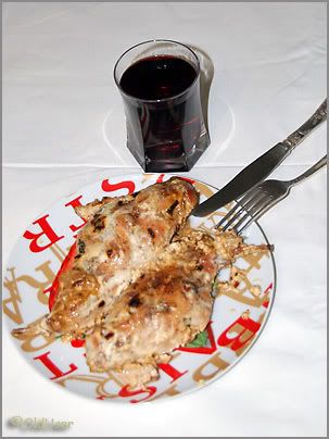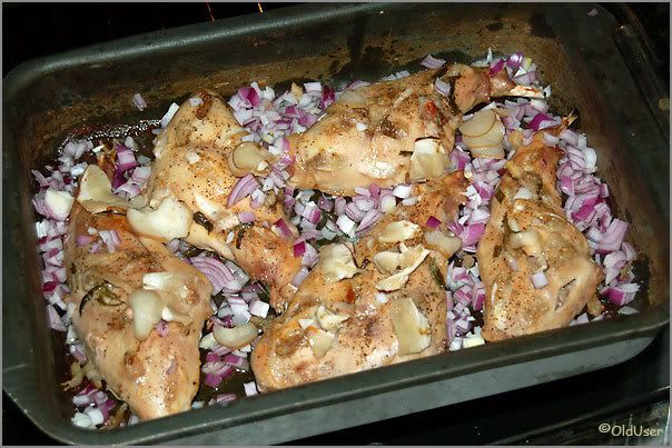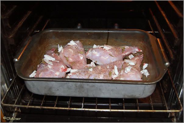 Складываем ножки в специально подноговленную посуду, насыпаем туда же остатки сала, немного подливаем оливкового масла, и - в разогретую духовку. Открыто. Минут на двадцать. Чтобы на ножках образовалась корочка: