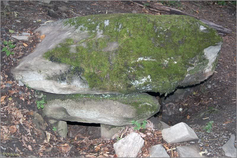 Внутри дольменов нет ничего. Ни костей, ни золота. Размер этих сооружений невелик - около метра с небольшим в поперечнике, и так же в высоту. Во входное отверстие человек не пролезет ни при каком раскладе.