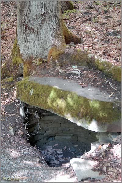 а пройдя дальше в лес, еще метров сто, через завалы, можно найти четвертый, спрятавшийся под корнями старого дерева.