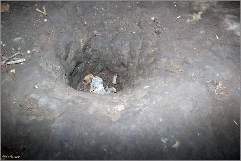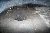 Немного не по центру пола - колодец, диаметром сантиметров тридцать.