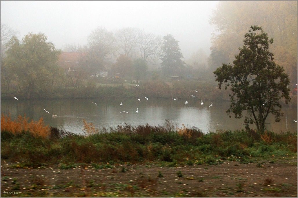 "утренние глюки в туманной дымке над безымянным прудом, что проезжаешь по дороге в турнов, слева по ходу движения"...