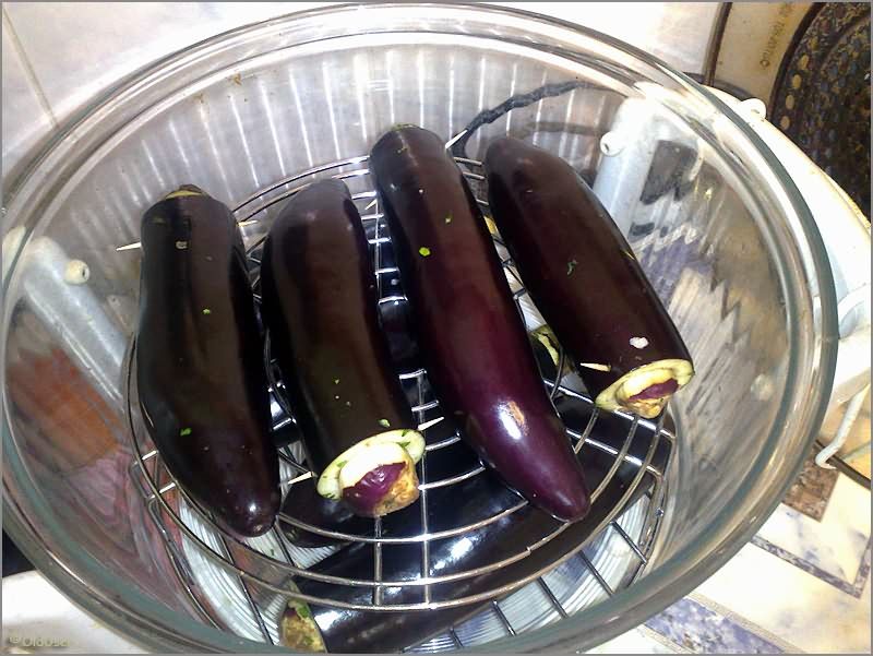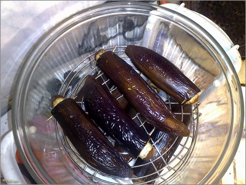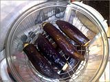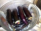 Заготовив так все имеющиеся баклажаны, засовываем из запекаться. Тут вариантов - тыща. Я делал и на мангале и в аэрогриле, можно делать в духовке, наверное можно и в микроволновке. Единственное, что скажу, что в аэрогриле шкурка баклажана остается мягкой, а на мангале она становится жесткой. Может не понравиться, тогда ее нужно будет позже счистить. В общем - печем.