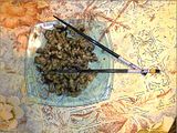 Типа беруца вопщем баклажаны, помидоры, слаткий болгарский перец (жолтый и красный), насаживаеца все на шампур и суёца в огонь, типа пока угли готовяца. вот... Как шкурка обгорит с овощей - их с огня снимаешь, шкурку ножом счищяешь, мелко рубишь, в кашу почти (двумя ножами, крест-накрест, по технологии, вжык-вжык), туда еще мелкорубленого лука-чеснока, мелкорубленой же кинзы (обязательно), перца-соли (обязательно), других трав и специй - опционально. Перемешать - и усе... Съедают даже те, кто не ест кинзы... Причем, как правило, не дожидаясь мяса... За что им и респект. Мясо - рулит!