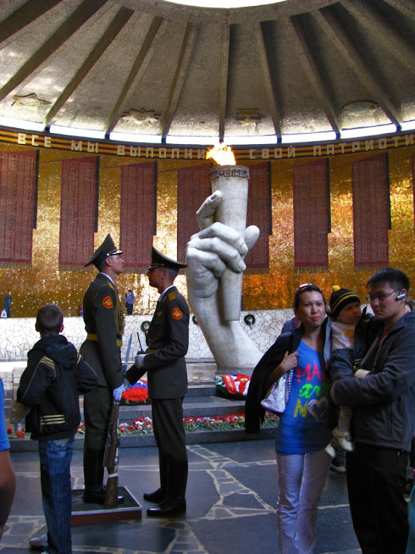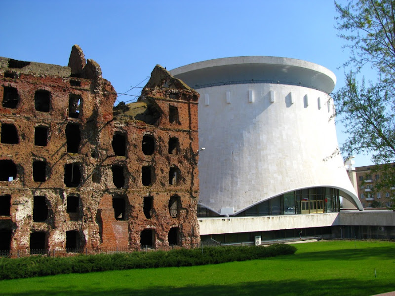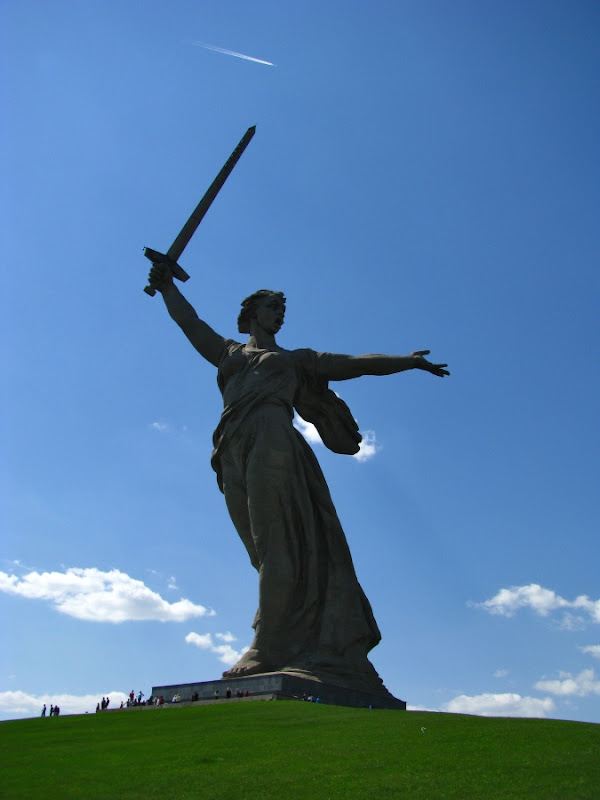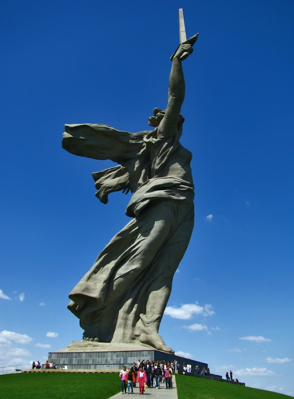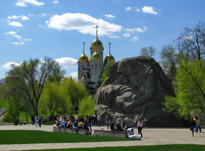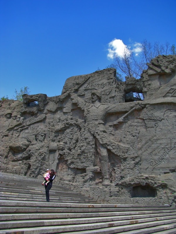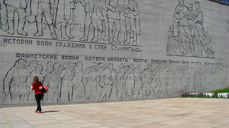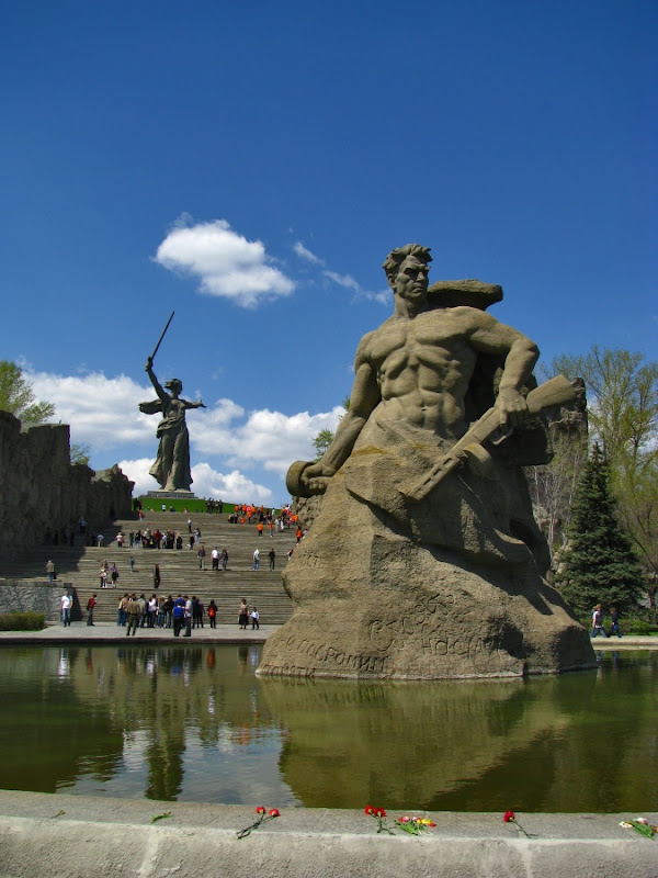 Майское кольцо. Часть 2. Прогулка по Волгограду. Герой как он есть ![]() Придя в себя после экстремального утра на волжском пляже, мы надеваем солидно потяжелевшие от влаги и песка рюкзаки - и идем осматривать Волгоград. В планах на день - прогулка по самому длинному городу России, подъем на Мамаев Курган и отъезд на юг, в сторону Астрахани. Для начала идем на речной вокзал - узнать, нет ли в ближайшее время какого пароходика на Астрахань. Увы, активное сообщение есть только с ближайшими населенными пунктами на Волге. В частности, с Краснослободском, городком на противоположном берегу реки. Не так давно его связал с Волгоградом автомобильный мост. Тот самый, который в конце мая "танцевал" на радость миллионам пользователей ютуба. Кто знает, может из-за этой его особенности паромы в Краснослободск пока и не торопятся отменять) Любителей парковки в неположенных местах в Волгограде поджидают неожиданности :) ![]() Современный Волгоград - при всех его огромных масштабах - произвел впечатление достаточно провинциального города, как будто застывшего в благополучных семидесятых. Архитектурный ансамбль центра города представлен, в основном, постройками советских времен. Ресторан "Маяк". За ним - редкий для Волгограда пример современной архитектуры - жилой комплекс "Паруса". Недалеко от него, как раз, мы и устроили свою мокрую стоянку. ![]() А совсем уж редкость для этого города - старинные здания еще "царицынской" эпохи, уцелевшие в аду Сталинградской битвы. Дом архитектора ![]() А еще из Волгограда вышел бы хороший город-побратим Кривого Рога. Как-никак, последний - во-первых, самый длинный город Украины, во-вторых, тоже является крупным центром металлургии. И, в третьих, в обоих городах обитают "трамваи с манией величия" - пресловутый Метротрам. Прокатились мы и на этом чуде инжинерной мысли. Неплохая штука. Обычные "шкодовские" вагончики - в отличном состоянии (как, похоже, и весь транспорт в городе) и разивают приличную скорость. Фотографировать подземные станции я не стал, опасаясь бдительных российских милиционеров. Поэтому вот вам метротрамвай на спуске в туннель, на 1-й Продольной. ![]() И только когда за окном трамвая появляется Родина-мать, начинаешь осознавать, что находишься не просто в крупном промышленном центре, а в городе, где определялся дальнейший ход мировой истории. ![]() 87 метров. 5500 тонн бетона. И при этом - удивительное ощущение движения, невероятная для таких размеров воздушная пластика. Завораживает ![]() Но ансамбль "Героям Сталинградской битвы" - это не только Родина-мать. В любой своей части, в любом ракурсе творение Вучетича и Никитина производит сильное впечатление. Привет скульпторам, которые даже трехметровую скульптуру умудряются сделать так, что если на нее взглянуть не с той стороны - вылазит какое-нибудь непотребство. На Мамаевом кургане, сколько не ходили, так никакого "второго люка" и не нашли. Площадь "Стоять насмерть!". Звучит голос Левитана, который сменяет то музыка военных лет, то звуки боя ![]() Вдоль лестницы - символические руины. На них надписи со стен разрушенного Сталинграда. "Врывайся в дом вдвоем - ты и граната". "Откуда бы фашист не взялся, непременно увижу. А если увижу, значит убью". "Успевай поворачиваться". ![]() Панно на площади героев. "Фашистские вояки хотели увидеть Волгу. Красная Армия дала им эту "возможность" ![]() Зал Во