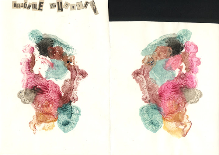 Похожий на сицилийского caporegime санитар дядя Рамазан вел по больничному парку в отделение арт терапии группу мужчин в серых байковых халатах, с хрупкими и белоснежными лицами обреченных ангелов,с лицами чья утонченная красота словно не вынеся собственного совершенства сломила их рассудок.Я вошел в мастерскую вместе с ними .Арт терапевт встретила меня холодно ,будто презирая меня за мою вменяемость.Уделяя все внимание юношам,которые под ее руководством увлеченно лепили животных из комьев голубой глины и рисовали цветными карандашами .Подойдя ко мне ,она показала мне технику бессознательной живописи,похожую на изготовление тестов Роршаха.Сидя у окна я размазывал гуашь разных цветов на одну половину листа,складывал его пополам и растирал. Смотрел на получившееся и вырезая из газеты буквы ,приклеивал к рисунку придуманное для него название