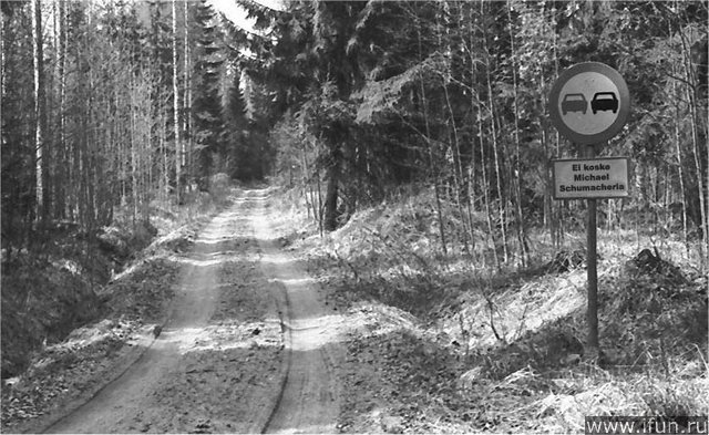 На табличке под запретом обгона текст: Не относится к Михаелю Шумахеру