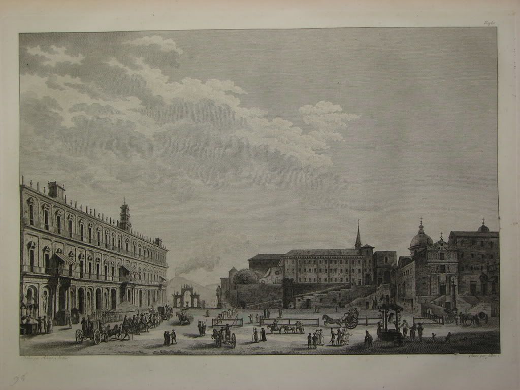 Неаполь. Общiй видъ, королевскiй дворецъ, соборъ Св. Януарiя внутри, видъ на Везувiй отъ замка Св. Эльма.
