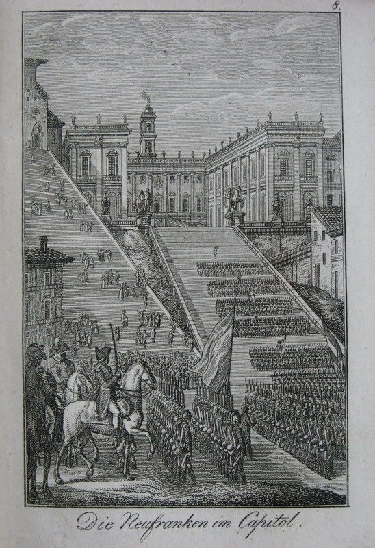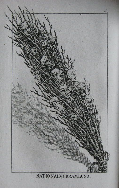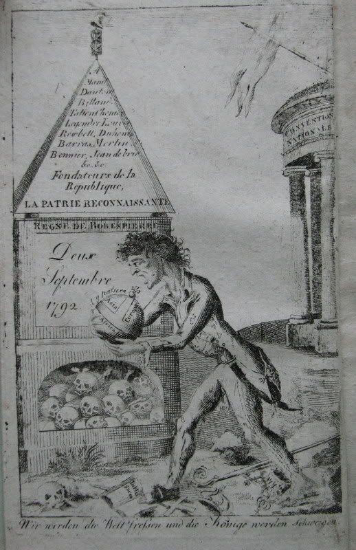 На первой подпись: Мы сожремъ весь міръ, и короли промолчатъ. На пирамидѣ: Основателямъ Республики — признательное отечество. На второй — Новые франки на Капитолiи. На третьей — Новѣйшее просвѣщенiе. На четвертой — Нацiональное собранiе. |
