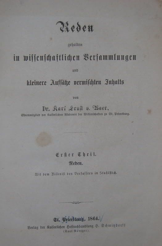 Думаю, будетъ правильно, если въ моемъ дневникѣ появится портретъ выдающагося русскаго бiолога-антидарвиниста Карла Эрнста фонъ Бэра.