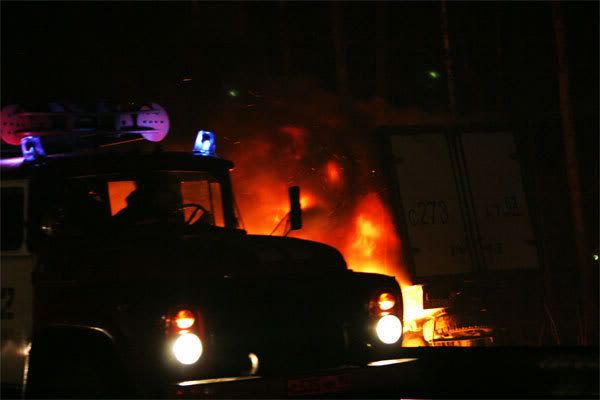 А по дороге в Москву на встречке Щелковского полыхал грузовик.