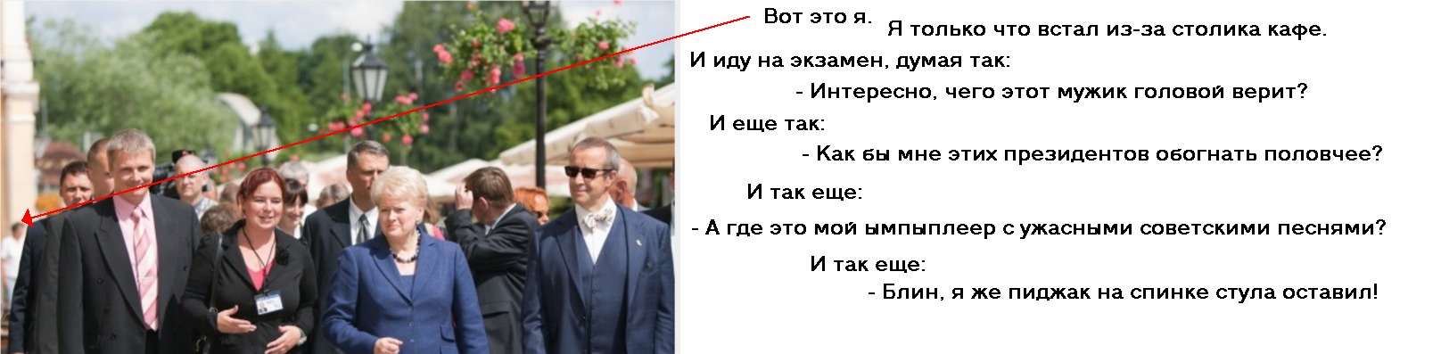 Согласись, странный способ ходить на экзамене: в костюме и в компании с двумя президентами.