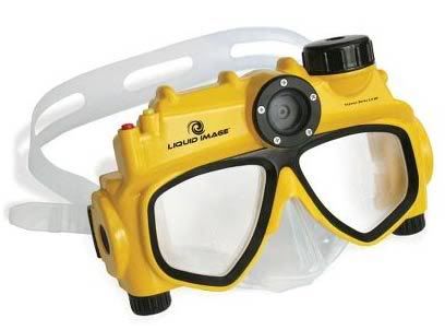 Вот такую фотокамеру продаёт каталог Hammacher Schlemmer, известный своими прикольными гаджетами, за сто долларов ($99,95). Этот 5 мегапиксельный фотик можно погружать на глубину до 4,5 метров, что обычно достаточно для съёмки рифов и тамошней живности. Понятное дело, что этим гаджетом можно не только снимать, но и защитить глаза и нос от воды при заныривании вглыбь. На стекле пловцу видно перекрестие прицела и там же светится LED индикатор, сообщающий в каком режиме работает камера - видео или фото. Имеется встроенная 16 МВ память, которая может запомнить до 30 имаджей размером 2560Х1920 точек или до 52-х сек видео. Также предусмотрено место для microSD-карты, так что картинок можно наснимать ещё больше без сбрасывания их на какой-нибудь хард. Работает от двух ААА батареек. Что интересно, производитель ограничил возраст покупателей - только клиентам от 13 лет и старше продадут такую маску. Я п ниатказалсо, только сотки жалко.
