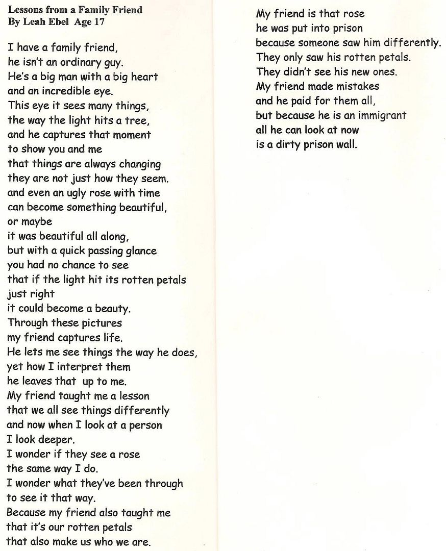 Две неточности, правда, вкрались в текст: 1) "becouse he is an immigrant" - не просто "иммигрант", а иммигрант с police record; 2) "dirty prison wall" - стены были чистыми, мылись дважды в неделю.