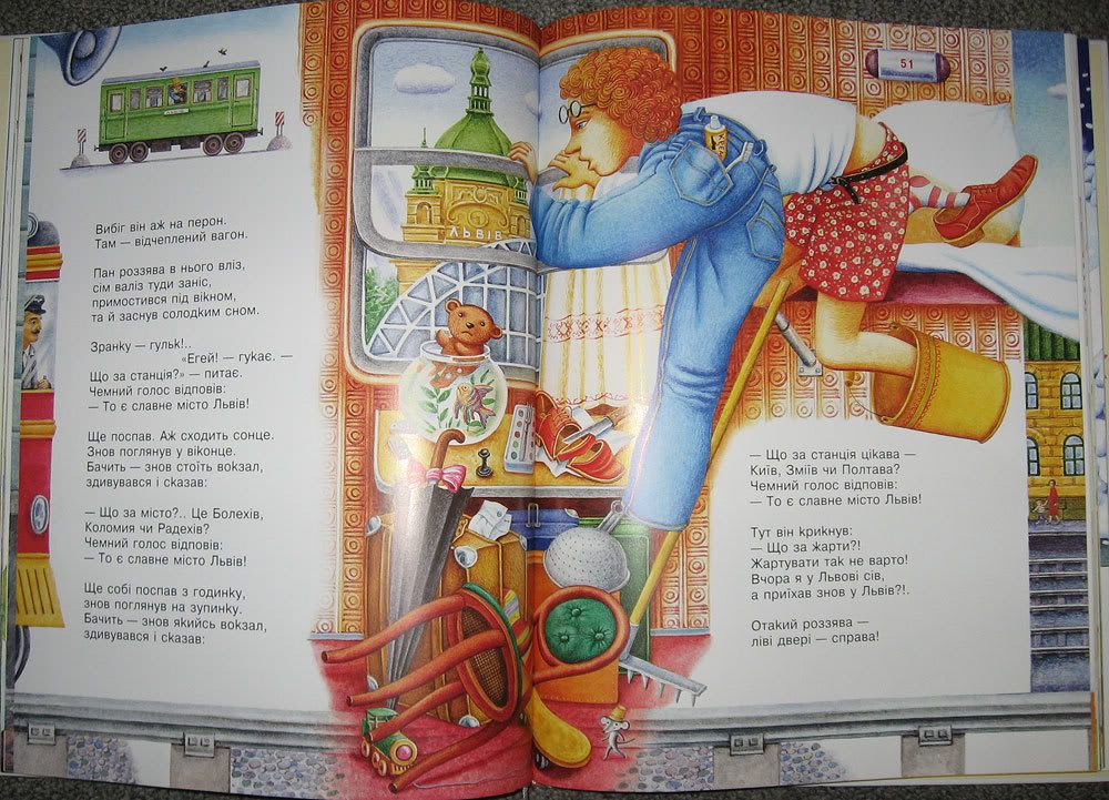 Вибіг він аж на перон. Там - відчеплений вагон, Пан роззява в нього вліз, сім валіз туди заніс, примостився під вікном, та й заснув солодким сном.
